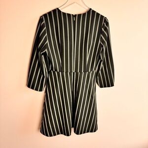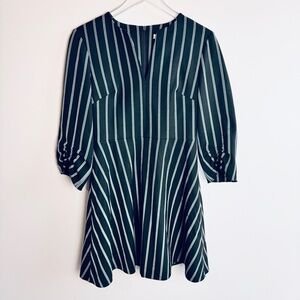 Tibi Women's size 6 Ruched 3/4 Sleeve Striped Felix Dress Black White