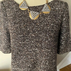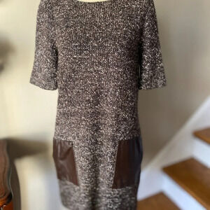 Tibi Wool Brown Tweed Wool & Leather Shift Dress