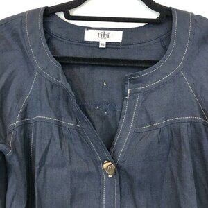 Tibi XS Linen Blend Navy Popover Swing Top Flowy