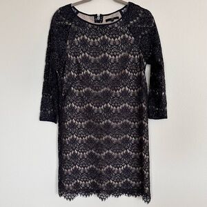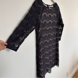 Tibi eyelash lace overlay navy mini cocktail evening dress size 6