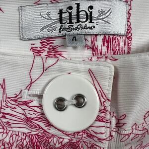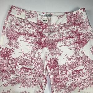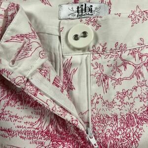 Tibi for Sea Island Pink White Chinoiserie Wide Leg Pants Cottage Herons Size 4