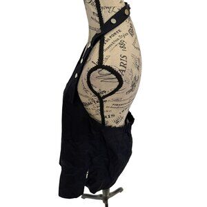 Design includes silver snap buttons on strap around neck, also slits on both sides.
