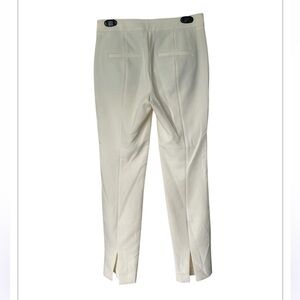 Tibi ankle pants in ivory. Wrap closure with d ring buckle. Tapered leg with back slits. Slant pockets. Poly viscose elastane blend. Dry clean. Waist 14” hips 18” rise 10” inseam 27”. Excellent condition. Size 0