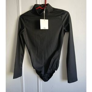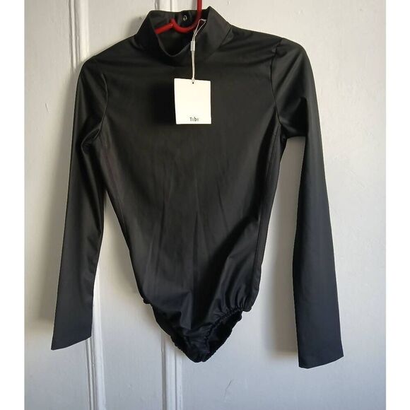 Tibi new york womens small vegan leather black hi neck bodysuit