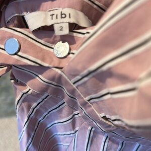 Tibi pink/white/black striped bib back cut out snap closure dress size 2