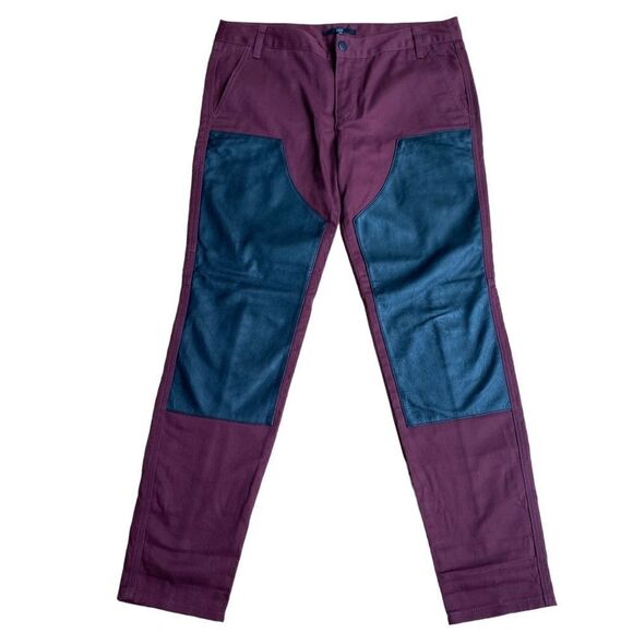 Tibi Burgundy Jeans With Black Lambskin Panels In Front
