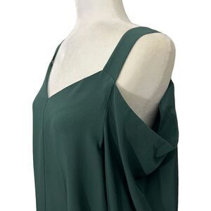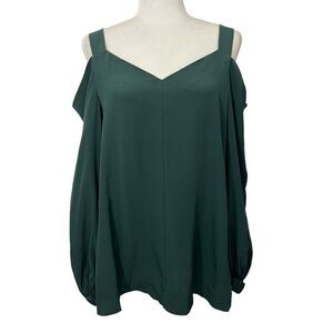 Tibi Women's Forest Green Silk Cold Shoulder V-Neck Long Sleeve Blouse Size 8