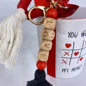 Tic Tac Toe Love Mug & Keychain Gift Set - You Won My Heart Valentines Gift NEW
