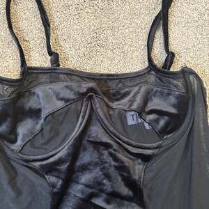 Tic Toc Black Velvet Mesh Bodycon Slip Dress Size [L ] Y2K Goth