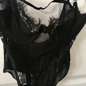 This elegant black lace bodysuit offers a sophisticated and alluring look. Perfect for intimate occasions, it combines comfort with style.