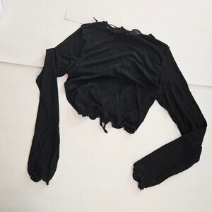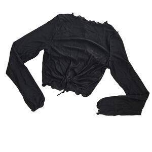 Tic Toc LA Mesh Sheer Long Sleeves Crop Top Tie Front in Black Size Small