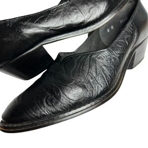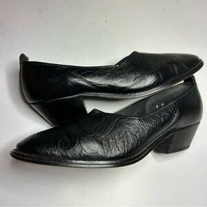 Tic-Tac-Toes Black Leather Embossed Slip On Loafers Sz 8