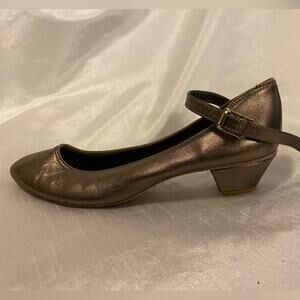 TicTacToes Gold Ankle Strap Dance Shoes Womens 6.5 1.25 inch Heel