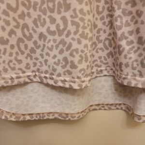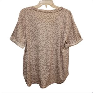 Tickled Teal Soft Cream Tan Leopard Print Cuffed Sleeve Tee Size XL