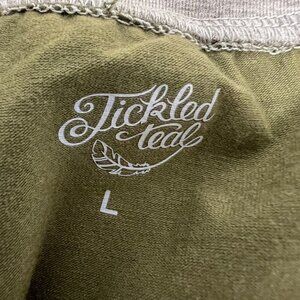 Tickled Teal Women’s Long Sleeve Tunic Top Green/Multi Size Large Elbow Patches