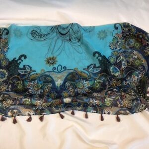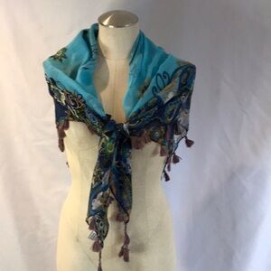 Tickled pink light blue floral pattern tassel scarf wrap boho summer bohemian OS