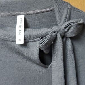 Tickled teal Women’s Grey Side Tie Sweater, Size Medium