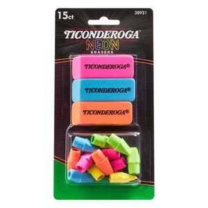 Ticonderoga Eraser Multi-Pack, Handheld & Pencil Top Erasers, Neon Colors 15ct