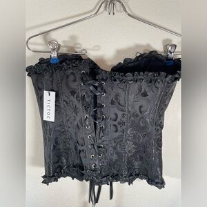 Tictoc black floral satin corset. This is New with tag. Laces up the back. Has metal claps in the front. Size medium.
