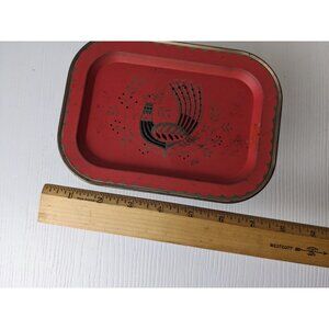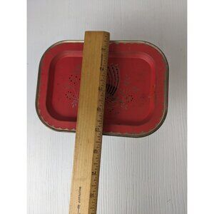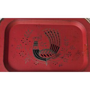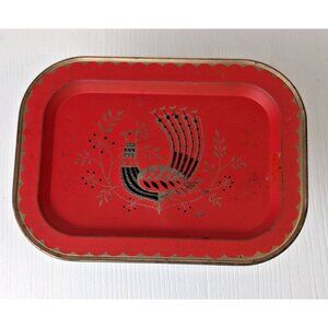 Tidbit Tip Tray Metal Serving 5"H x 7"L Red - Peacock - - Red MCM Vtg