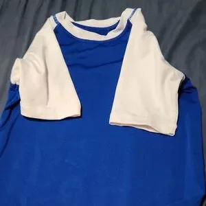 wonder nation rash guard blue with white trim and arms
