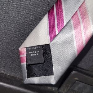 Pink and Grey 100% Silk Express Tie.