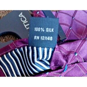 This vintage Nautica tie features a retro 70s, 80s, 90s, and Y2K-inspired design with a purple check pattern. Made from silk, this designer piece exudes a classic style with a width of 3.25 inches and a length of 59 inches, making it a stylish accessory for any man's clothing ensemble. Perfect for adding a pop of color and a touch of nostalgia to any outfit, this tie is a versatile and timeless addition to any wardrobe.