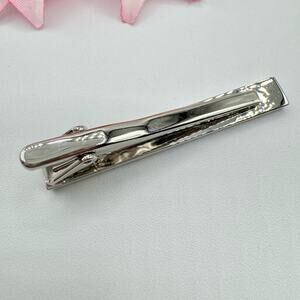 Tie Clip Bar Clasp Shiny Silver Tone Finish Diagonal Stripes Dapper Cool