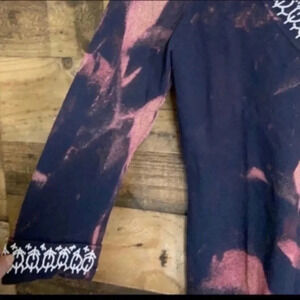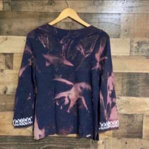 Tie Dye Boho Grunge Beaded V Neck Top Women’s Medium Stretch Rayon Nylon