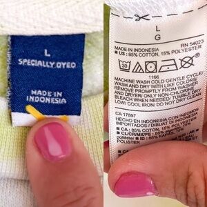 Tie-Dye Cropped Cotton Sweatshirt. Women's Size Large. 85% cotton, 15% poly, long sleeve, crew neck, relaxed fit, citrus washed color. Very good pre-owned condition, no visible flaws.