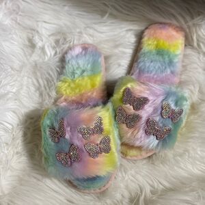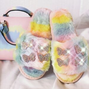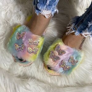 Tie Dye Faux Fur Butterfly Slippers