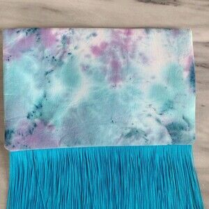 tie dye clutch fold over flap fringe handbag bag night out evening casual one of kind unique boho bright color blue teal purple accessories bohemian beach festival hippie gypsy summer vacation resort cruise handmade etsy