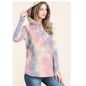 Tie Dye Hoodie w/ Leopard Print Hood▪︎S-XL