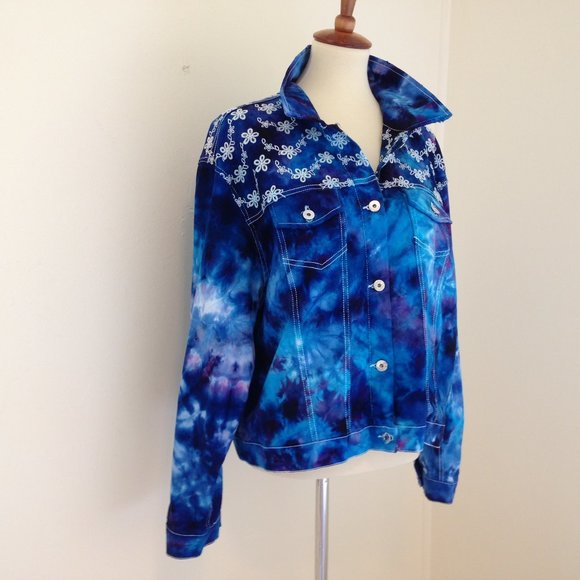 Tie Dye Jean Jacket ice dyed denim blues Handmade
