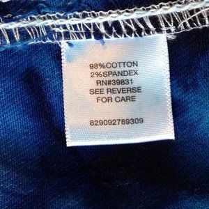 Blue jean baby queen jacket tie dyed in clouds of true denim blue, turquoise, purple, violet. White embroidered daisy eyelet detail along the yolk. I started with a brand new white jean jacket & transformed it using an ice dye technique, creating that spontaneous watery breakdown of colors. This piece will look even better with some wear!