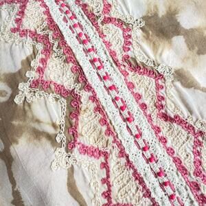 Tie Dye Kaftan Tunic Small Pink Tan Boho Chic Embroidery Tassels Festival Hippie
