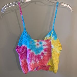 Cute tie dye, knitted crop top, size medium, stretchy, very soft and comfy!