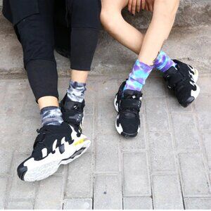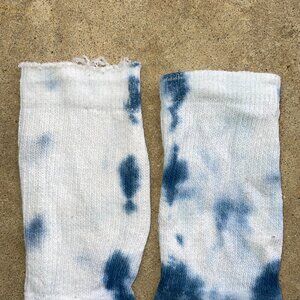 Tie-Dye Quarter Crew Socks. Originally white Fruit of the loom crew socks for shoe size 8-12. Then custom hand tie dyed with navy and blue tie dye color mixture. Featuring; smooth toe seam and soft stretch spandex. Material content is 83% Cotton, 14% Polyester, 2% Fiber and 1% Spandex. First few images are used for aesthetic and style inspiration. Please see all pictures and ask before purchasing, if you have questions.