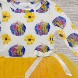 Tie Dye Pumpkin Yellow Tulle Long Sleeve Dress