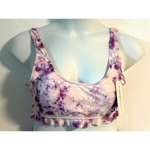 Tie Dye Purple Ruffle Edge Bikini Swim Top Size 2XLThe Free Yoga Beach Pool New