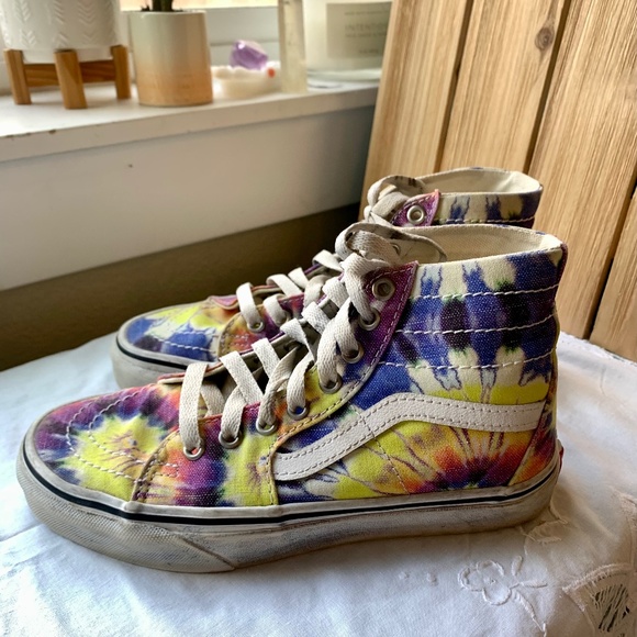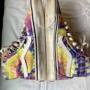 Bright tie dyed pattern, skate hi’s. Gently worn, still in great shape.