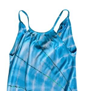 Tie Dye Summer Dress Womens S Teal White Sequins Tie Back Boho Colorful Festival