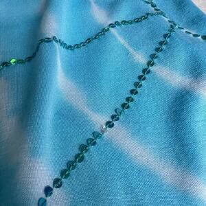 Tie Dye Teal & White Summer Dress Sequins Tie Back Boho Colorful