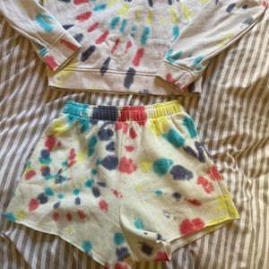 Tie Dye Sweatshirt Set with crewneck sweatshirt and shorts