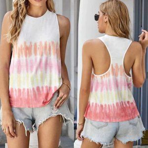 NEW Tie Dye Tank Racer Back Light Weight Orange/Pink/White SZ LARGE