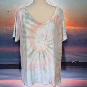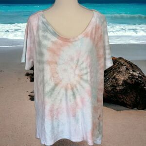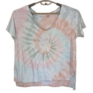 Tie Dye TerryCloth Top L Relaxed Short Sleeve Beachy Coastal Pastels Hippie. Condition is pre-owned with no rips, tears, holes or discolorations. Please measurements!!