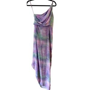 Tie Dye Together Maxi Dress Size M Pastels Chiffon One-Shoulder Ruched Waist