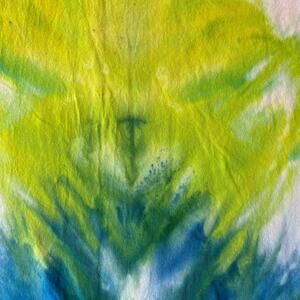 Vibrant ice dyed t-shirt using hemostats to create a mandala pattern. I used bright colors and lots of negative (white space), result is a vibrant, summery vibe! Procion dyes were used so colors will stay vibrant wash after wash.