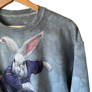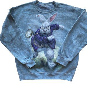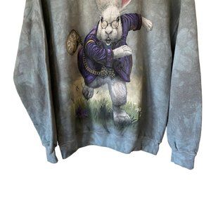 Tie Dye White Rabbit Graphic Sweatshirt Green Bluish Grey Lightweight Sz Md
