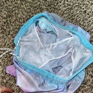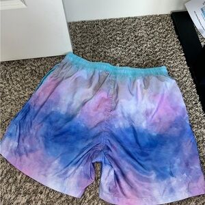 Unknown brand, size large gradient blue and purple tie dye men’s swim shorts. Perfect for a day at the beach or pool. No flaws, mesh lining. Smoke free home. Has pockets